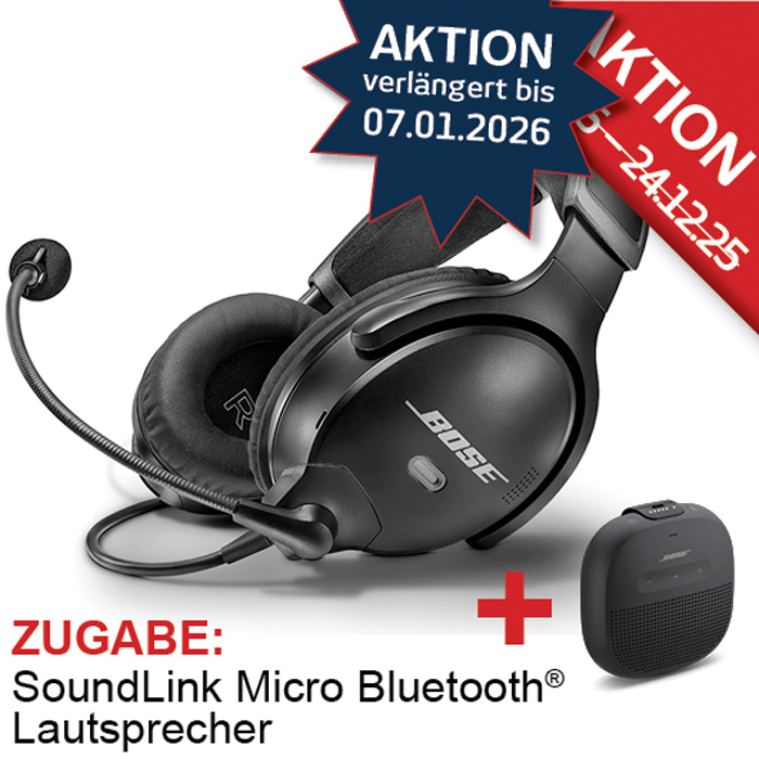 - 2Ă Bose A30 Aviation Headsets â 1 x gratis Bose Soundlink Micro Bluetooth Lautsprecher + 10âŻ% Rabatt auf das 2. Bose Aviation Headset