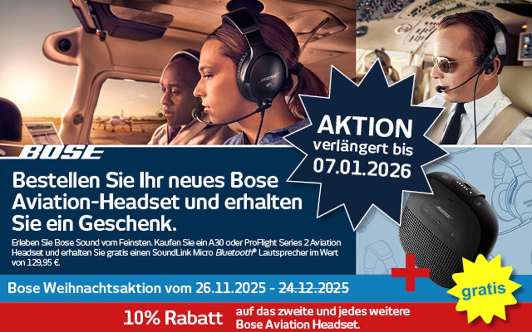 - 3× Bose Aviation Headsets (mixed) → 1× free Bose SoundLink Micro Speaker + 10% discount on the 2nd & 3rd Bose headset