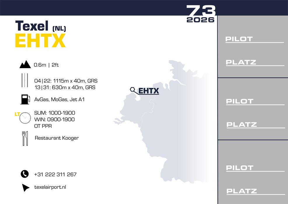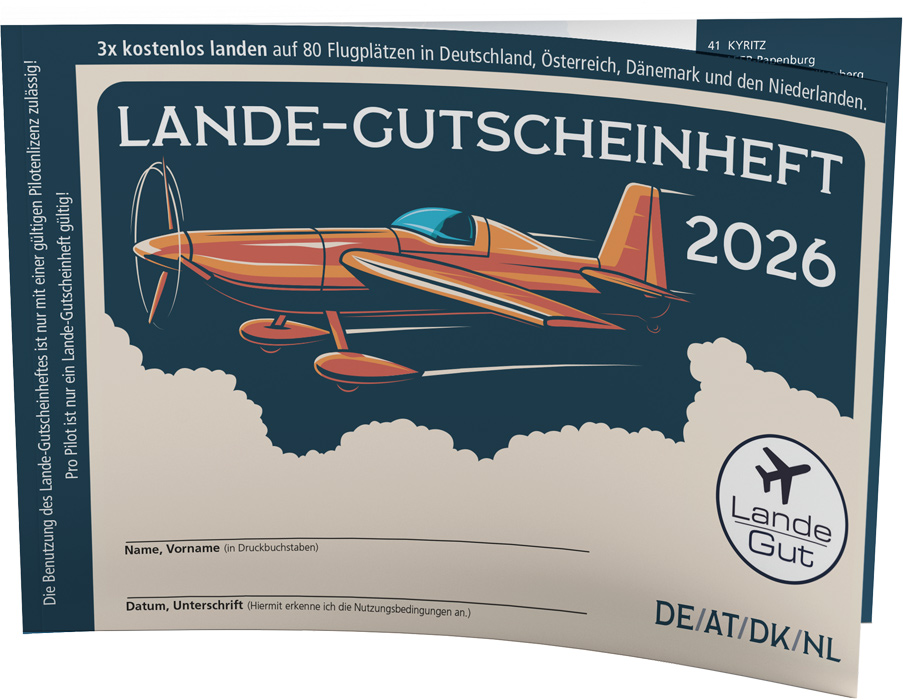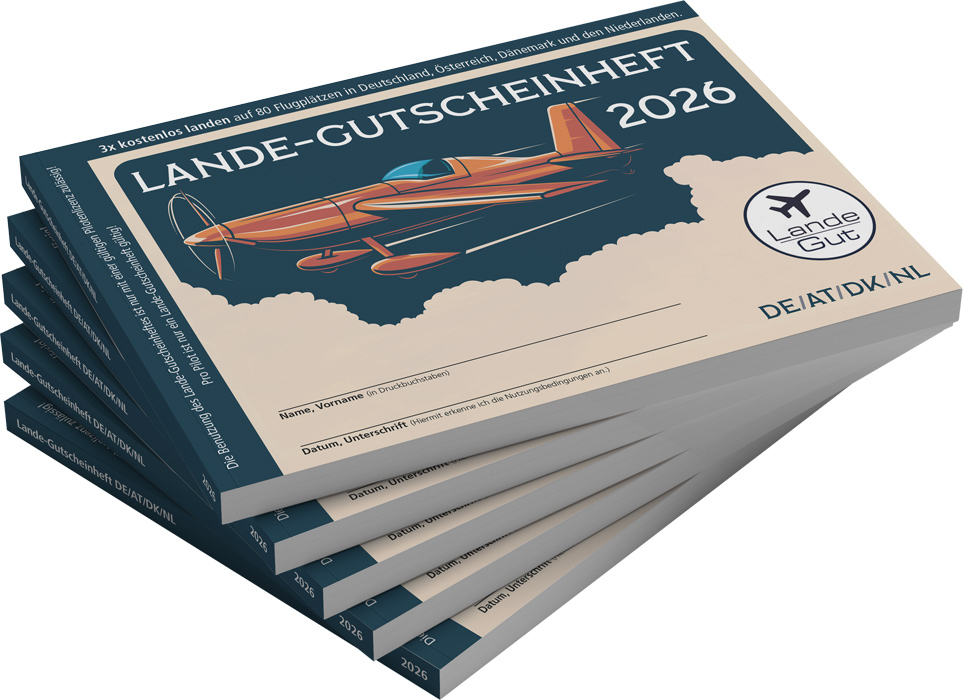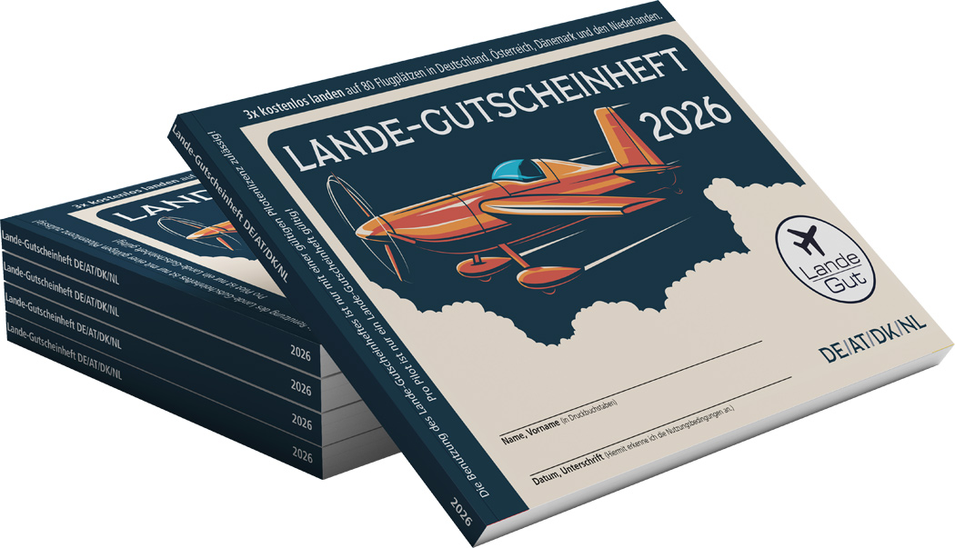 After just a few landings, the Landing Voucher Booklet pays for itself – ideal for powered aircraft, microlight and motor glider pilots. Only one Landing Voucher Booklet 2026 is valid per pilot. The voucher booklets are only valid in conjunction with a valid pilot´s license.