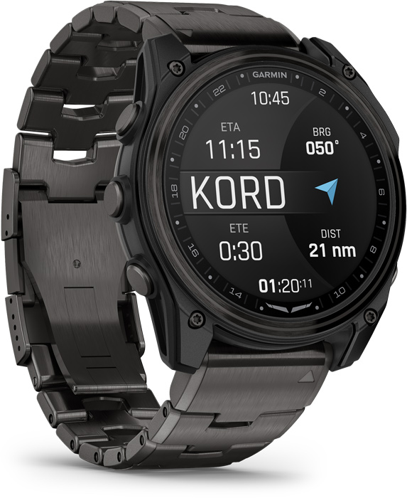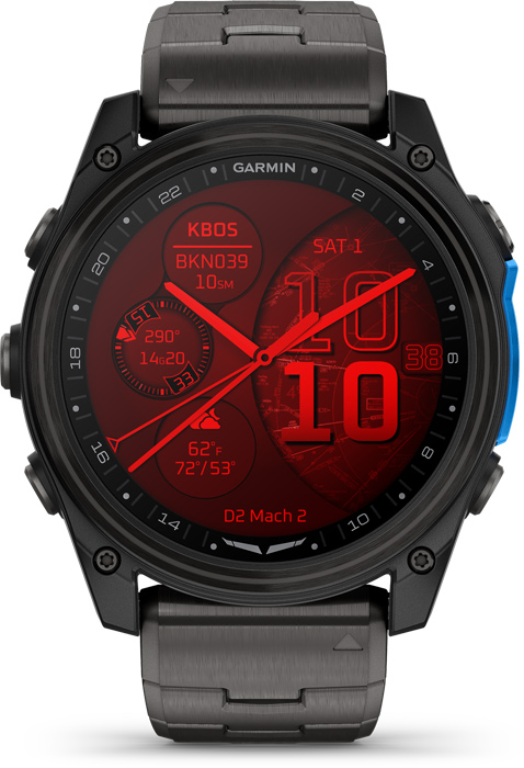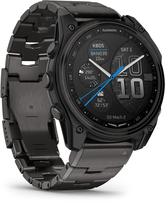 The D2 Mach 2 features the most advanced aviation map ever available on a Garmin pilot smartwatch. The map includes detailed topography, terrain shading, color-coded airspace boundaries, custom waypoints, intersections, VORs, and much more. Pilots can quickly switch from the map page to airport diagrams to view runway orientations.