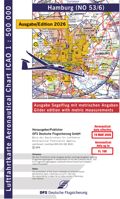 Vorbestellung ICAO-Segelflugkarte 2026 Hamburg Papier unfoliert