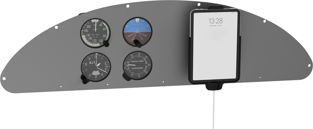 Die SkyFlex-Halterung ermöglicht die platzsparende Nutzung des iPad mini im Cockpit. Das iPad lässt sich dank neigbarer Gelenkplatte flexibel ausrichten.